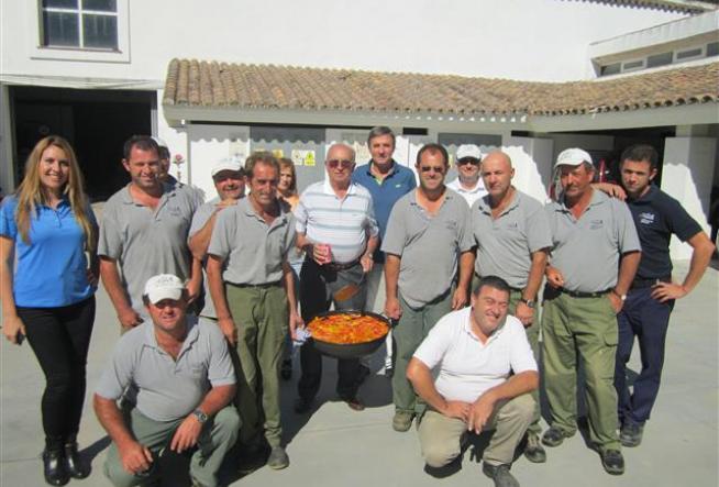 Don Agustín García Agüera, recientemente nombrado Capitan Honorifico de Arqueros Golf, quiso hoy celebrar dicho nombramiento con los Jardineros de Arqueros Golf invitándoles a un arroz campestre en su Nave de Mantenimiento.